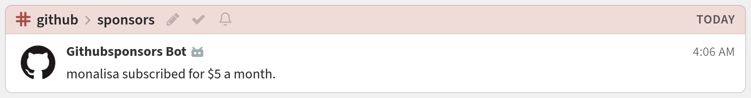 You're done! Your GitHub Sponsors notifications may look like this: