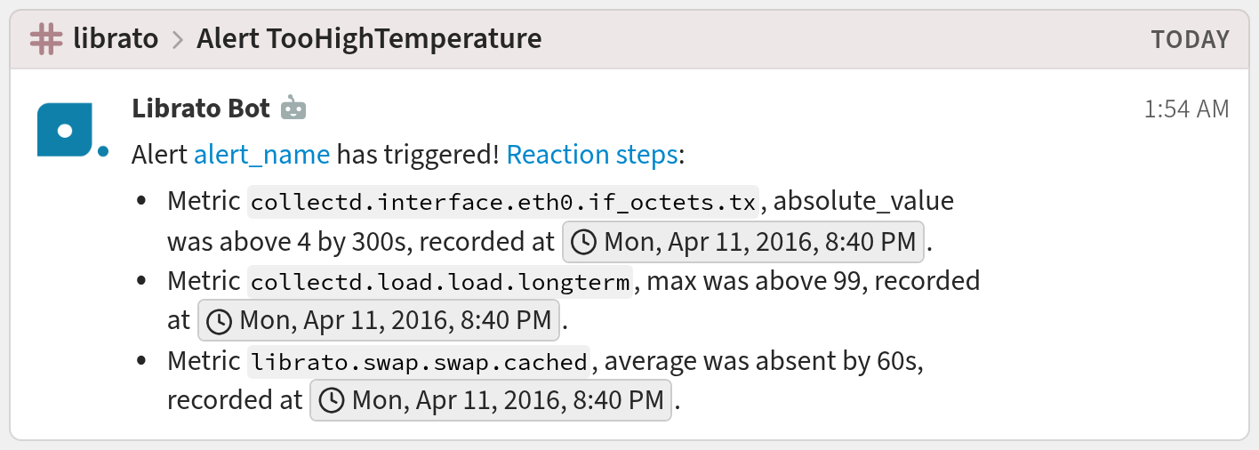 You're done! Your Librato notifications may look like this: