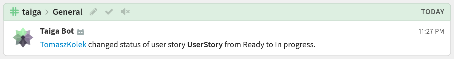 2. Decide where to send Taiga notifications, and generate the integration URL.
